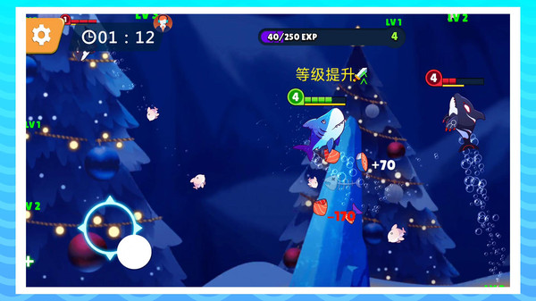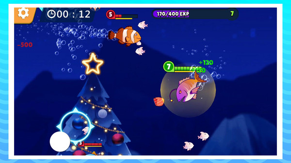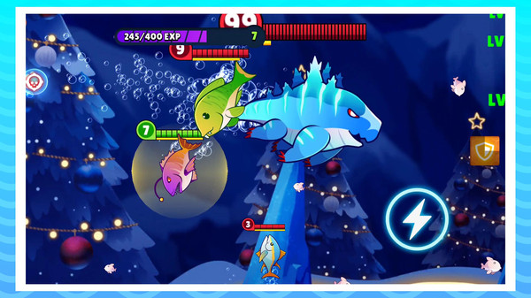 1、需要精准判断其他鱼类的攻击时机,巧妙运用道具与闪避技巧,才能够在众多鱼类的围追堵截中全身而退。