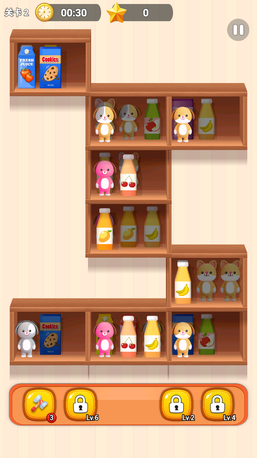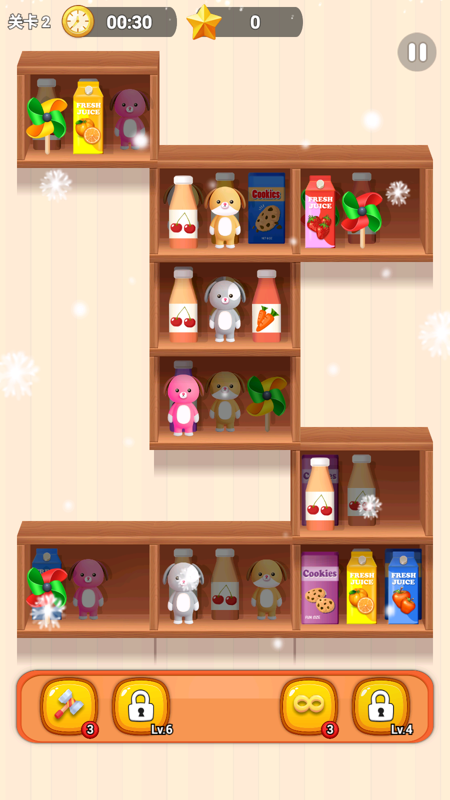 1、创新融合货柜收纳与经典三消机制,在消除过程中需要兼顾空间布局规划。