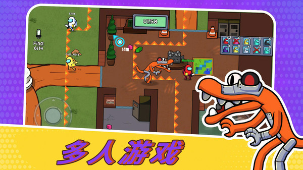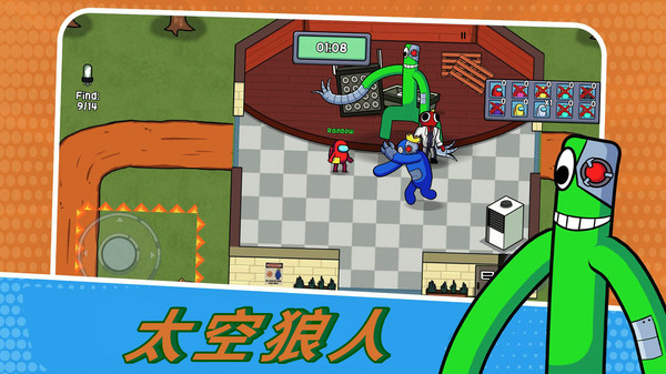 1、将卡通画风与生存恐怖结合,通过诡异的音效、怪物突然出现的惊吓点以及倒计时压力,持续营造出令人屏息的紧张氛围。