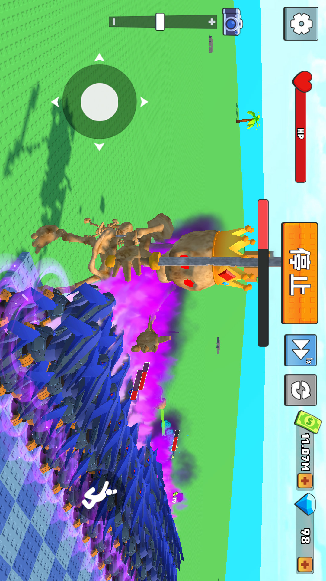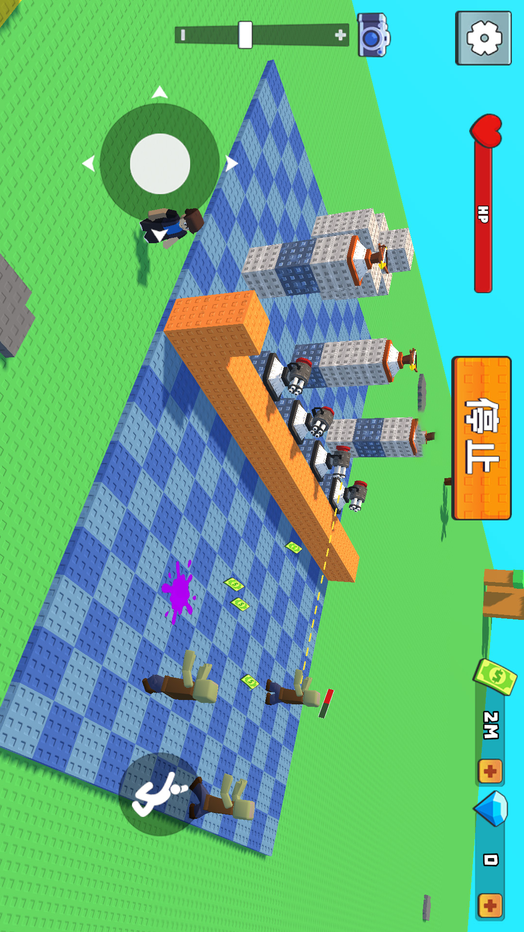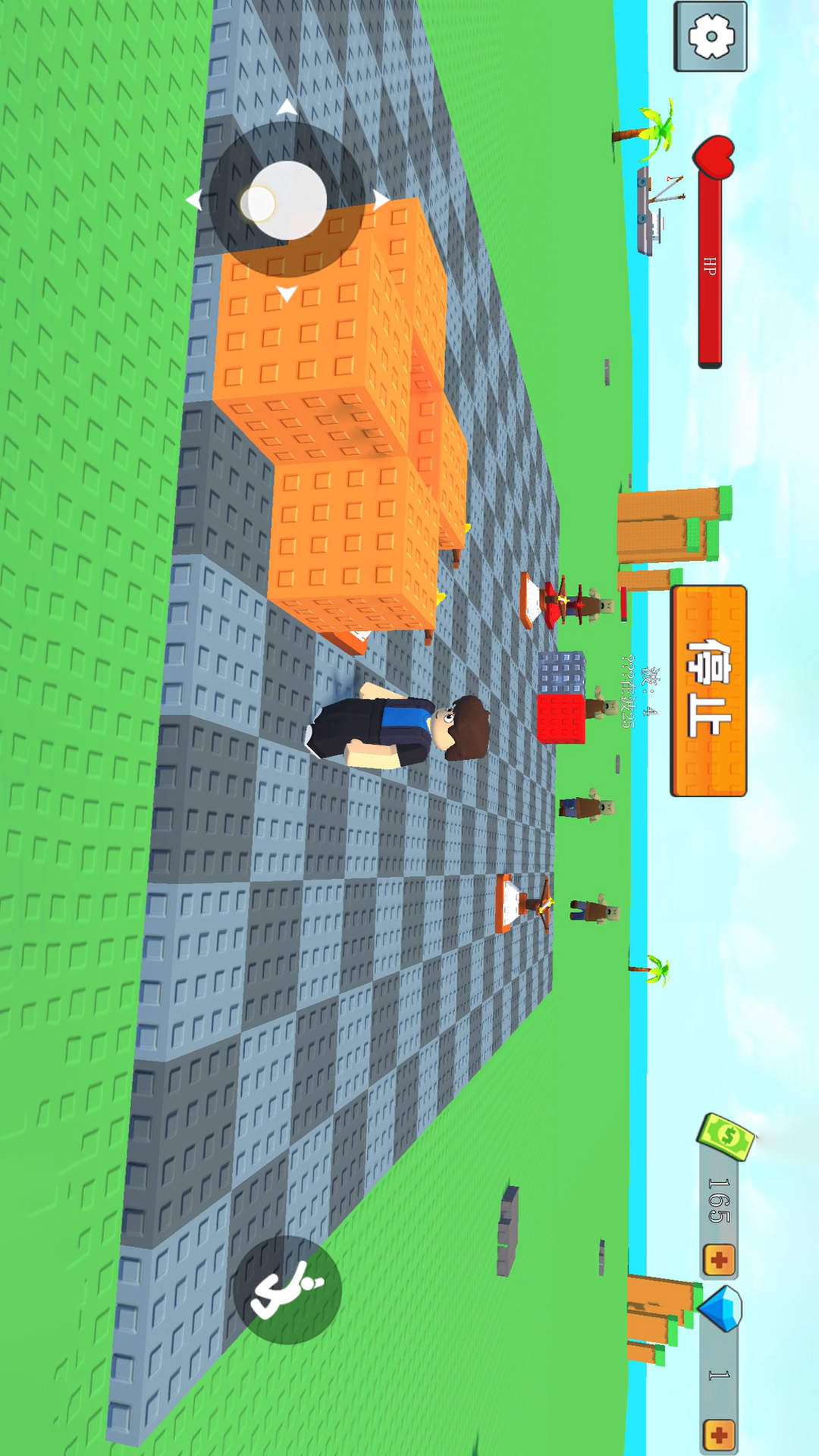 2、虚拟摇杆控制角色开始移动,点击使用各种工具,建造强大的炮台射击沿路的敌人。
