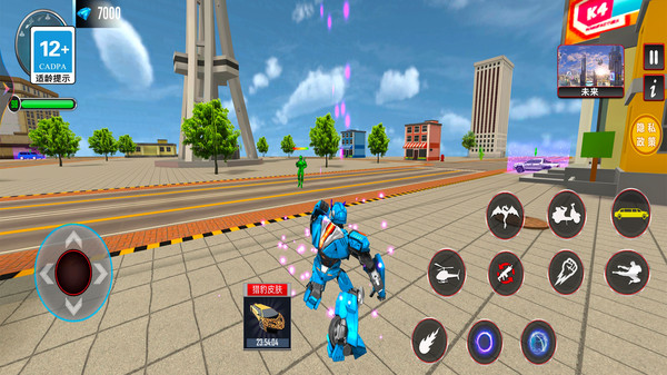3、通过左侧轮盘控制机甲移动,右侧控制切换形态以及攻击技能的释放。