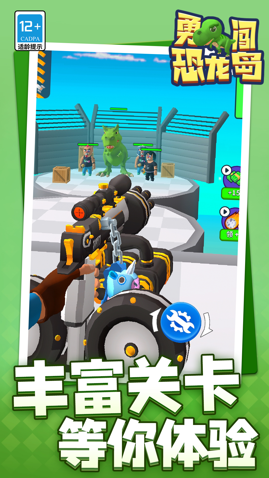 2、走进第一关,需要击杀各种不同造型颜色的恐龙。