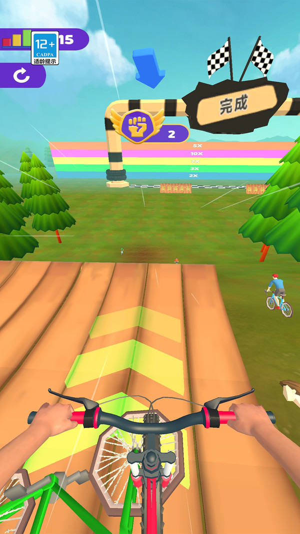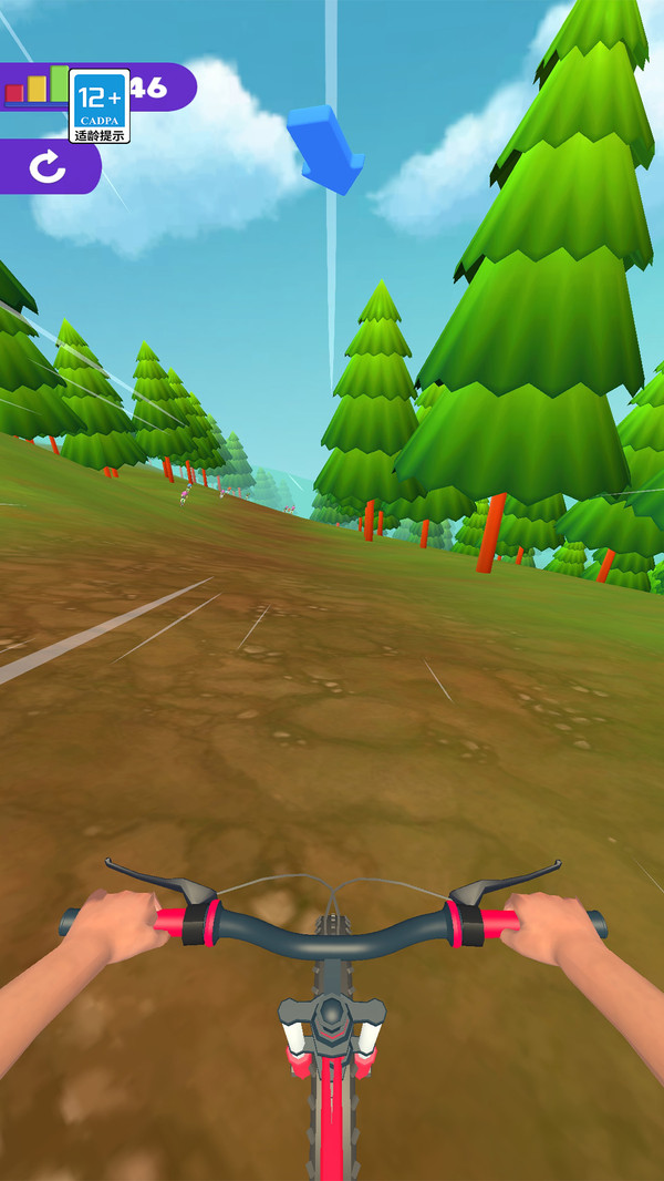 1、当自行车高速下坡或全力冲刺时,配合画面的动态模糊与风声音效,能带来风驰电掣的畅快体验。