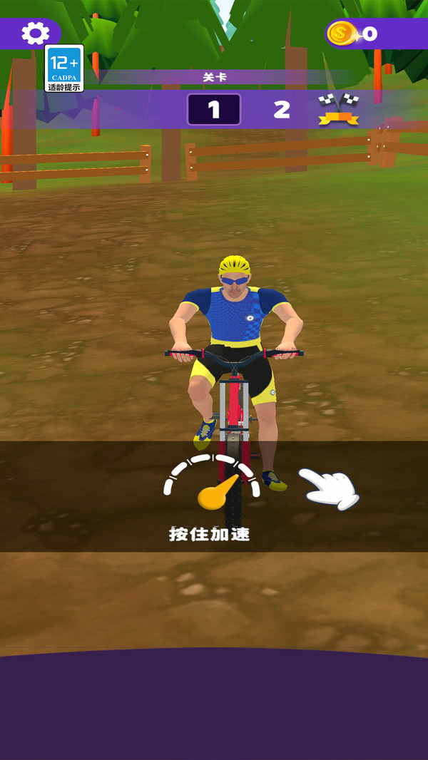 1、关卡挑战中,点击屏幕按住即可让自行车加速,滑动控制方向,松手减速。