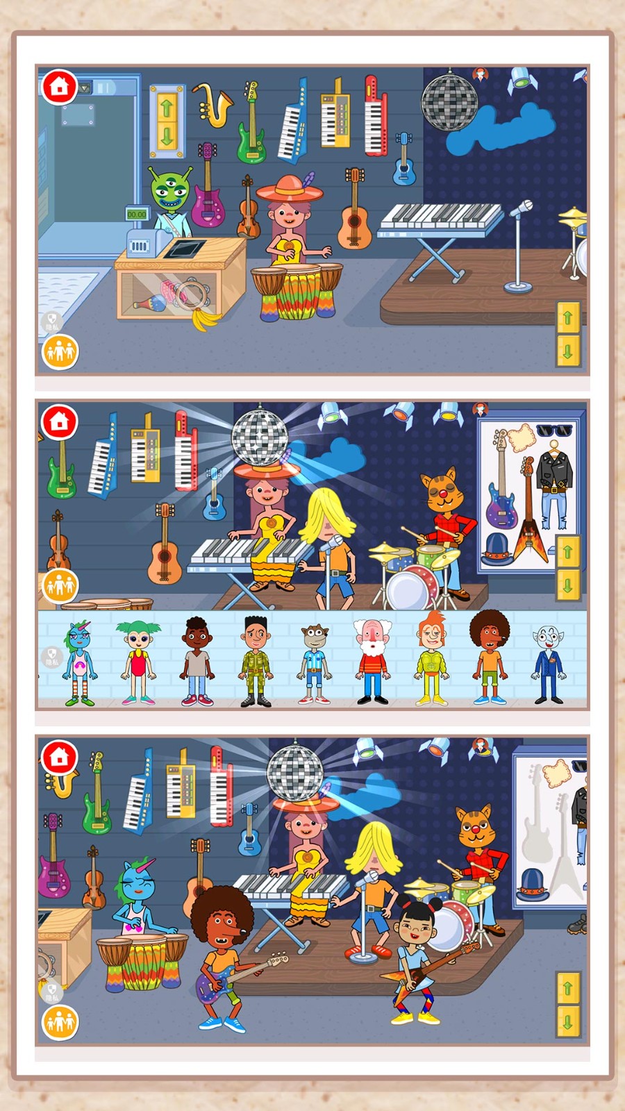 2. 每个商业场景都配备专属互动道具,例如餐厅厨具与乐器设备都能进行真实的功能操作。