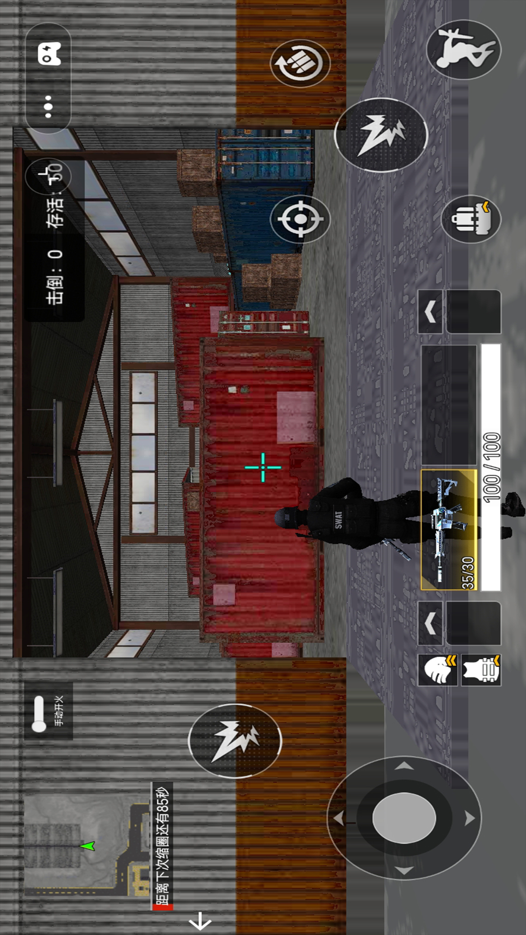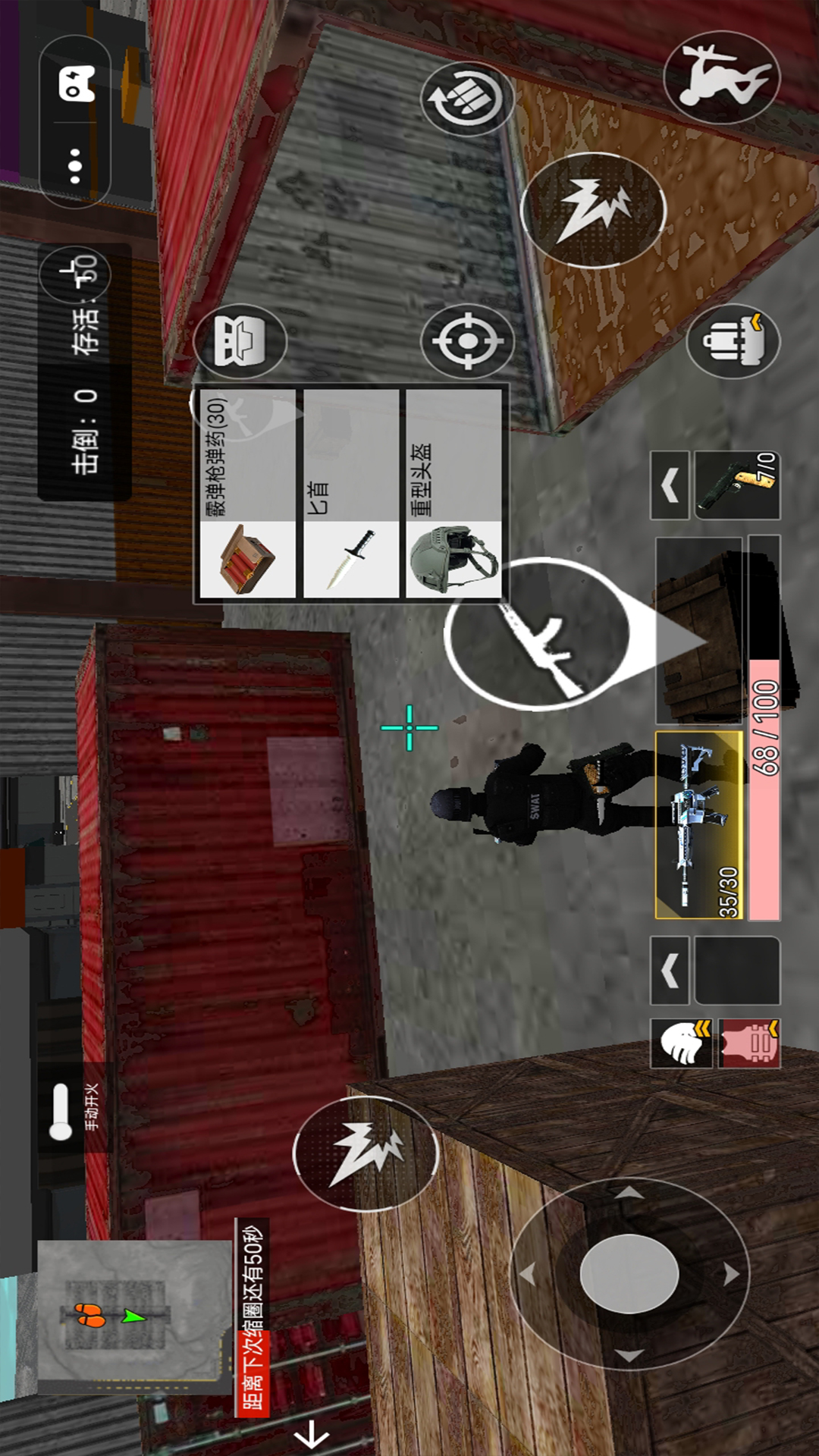 3、不断的冲刺,收集沿路的武器道具,找寻安全的位置进行躲避,射击敌人。