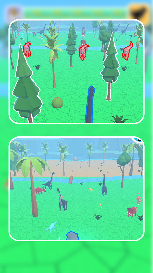 4、和强大的恐龙展开战斗,避开攻击获取更多的食物,一不小心就会失败。