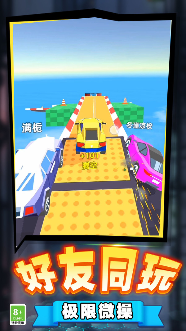 2、每条赛道都独一无二,融合了高难度坡道、飞跃平台和狭窄通道等元素,要求玩家必须全神贯注,应对瞬息万变的赛道环境。