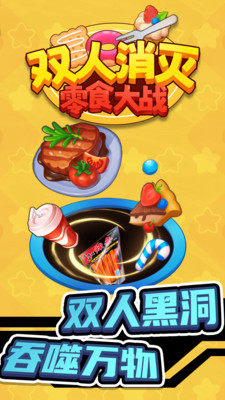2、点击双人消灭零食,一起化身黑洞来吞噬所有的吃的吧。