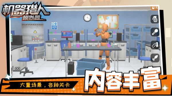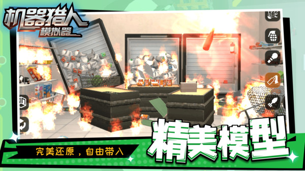 机器猎人模拟器是一款纯粹的物理解压休闲游戏。在这里,你的唯一目标就是化身无情的破坏者,操纵强大的机械猎手,在各种精心布置的场景中尽情宣泄。游戏提供琳琅满目的武器与可互动的房间,一切物品都能被真实的物理引擎摧毁。没有复杂任务,没有规则限制,有的只是最原始、最直接的破坏快感。忘却烦恼,进入这个终极减压空间,享受粉碎一切的纯粹乐趣吧!