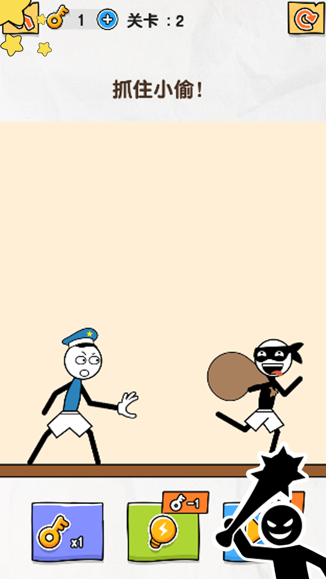 3、按住并拖动来伸展手臂,抓住小偷就是成功。