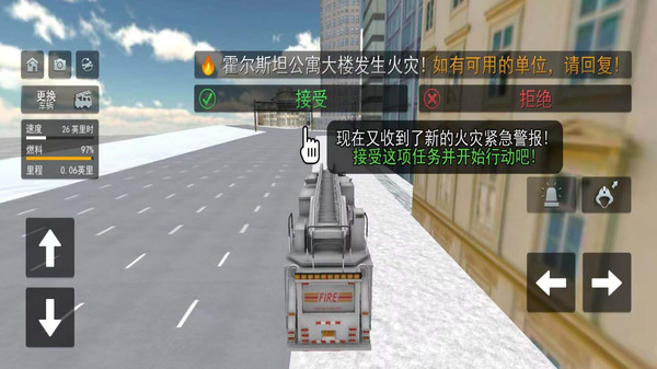 2、可以切换第一视角驾驶消防车,体验更逼真的模拟玩法。