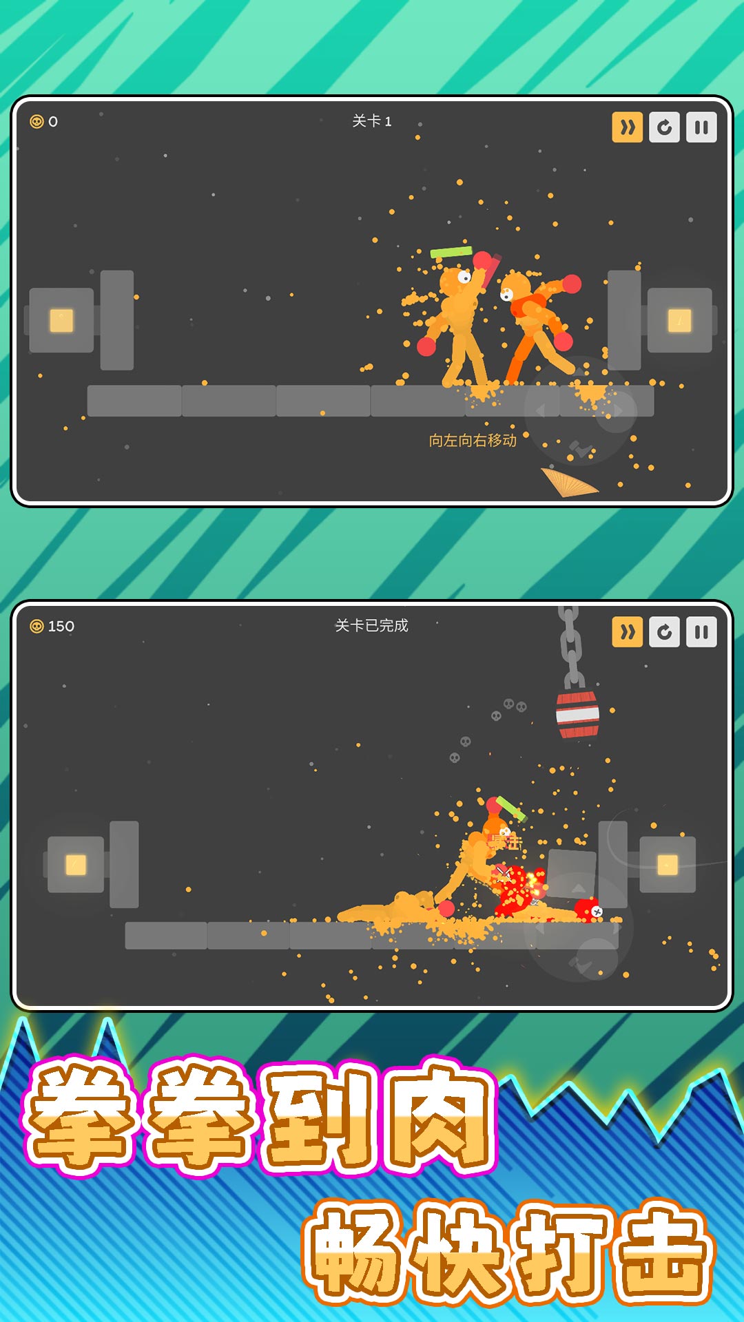 1、极简火柴人画风搭配炫酷特效,技能释放华丽却不遮挡视野,视觉清晰且富有节奏感。