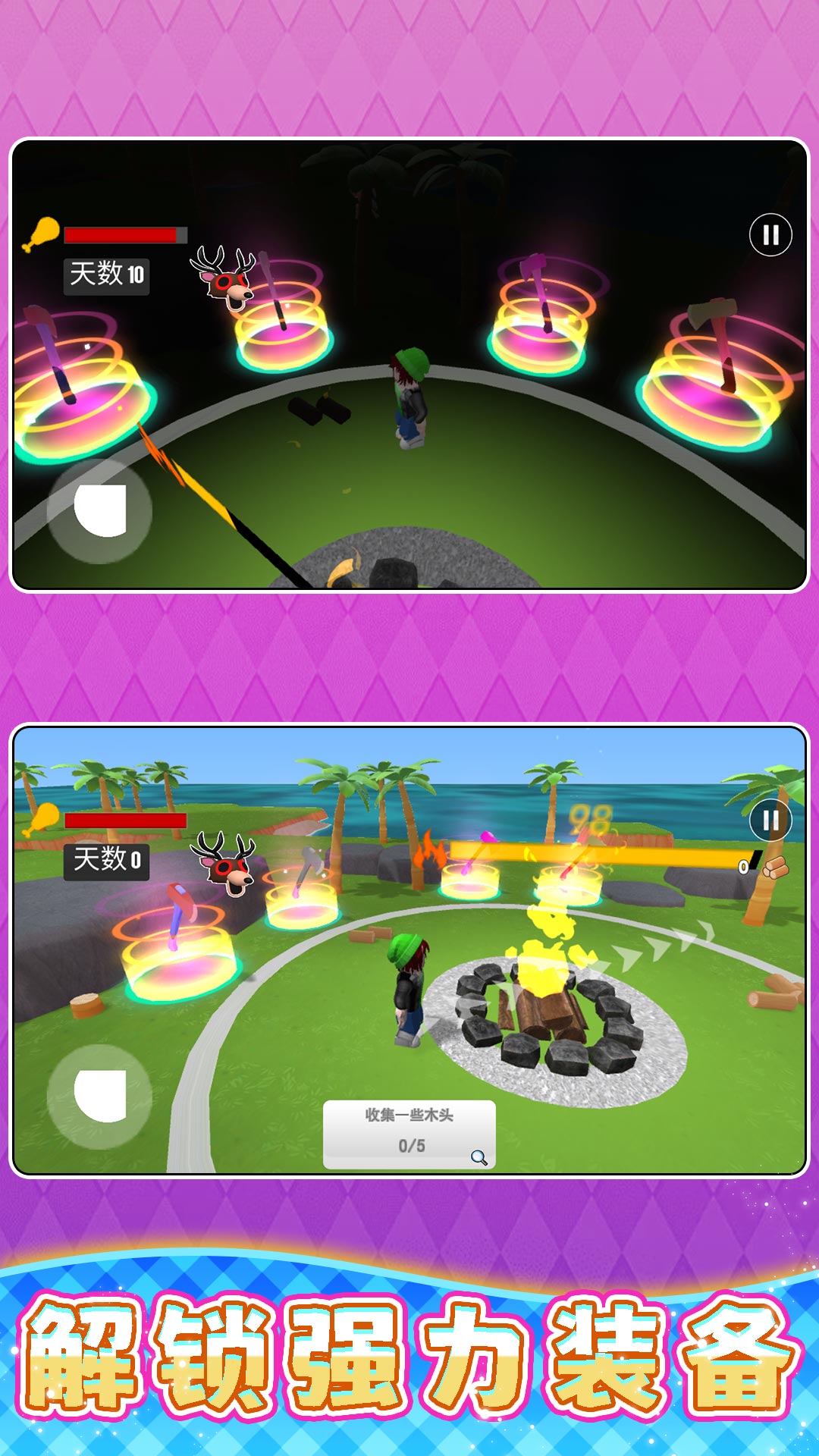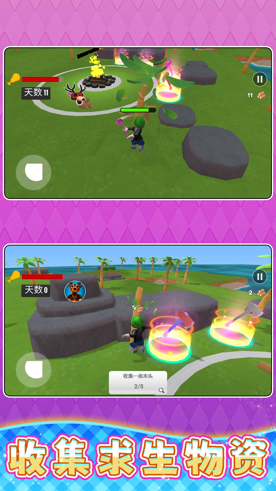 1、独特的丛林生存机制,玩家需在限定时间内收集资源,合理分配体力与物资,维持角色生命值与精神状态。
