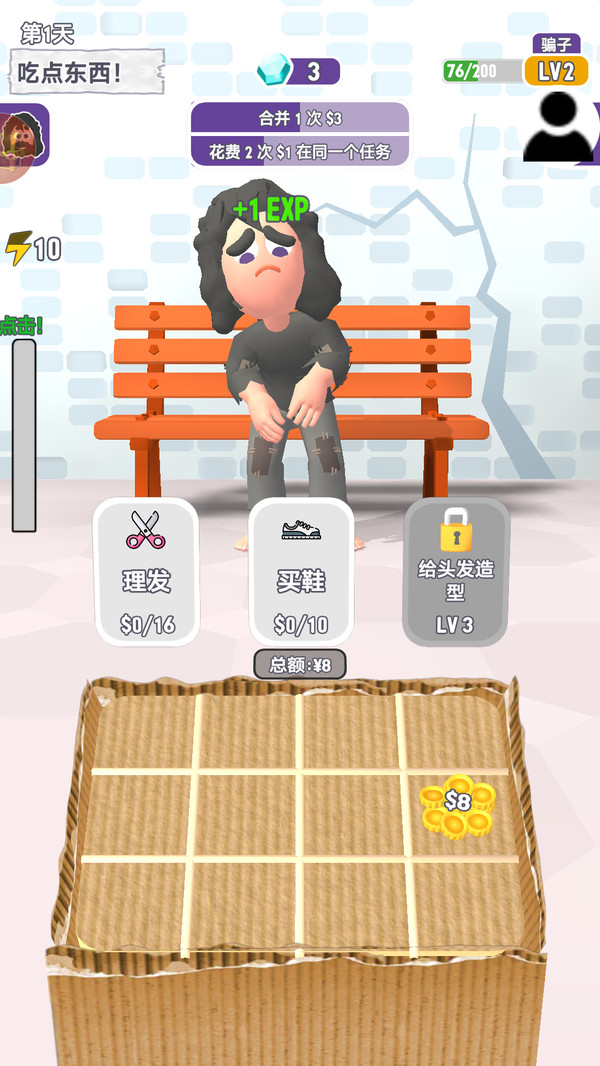 逆命之弈是一款充满励志色彩的点击合成游戏。你将扮演一位身处逆境的主人公,从最底层的街头乞讨开始你的奋斗旅程。通过不断点击收集微薄收入,将零钱合并成更大面值,解锁各种改变命运的机遇。你需要完成挑战、做出抉择,并一步步改善你的居住环境。从露宿街头到拥有温馨小屋,再到入驻豪华公寓,体验一段通过自身努力从无到有、彻底改变命运的逆袭之路!
