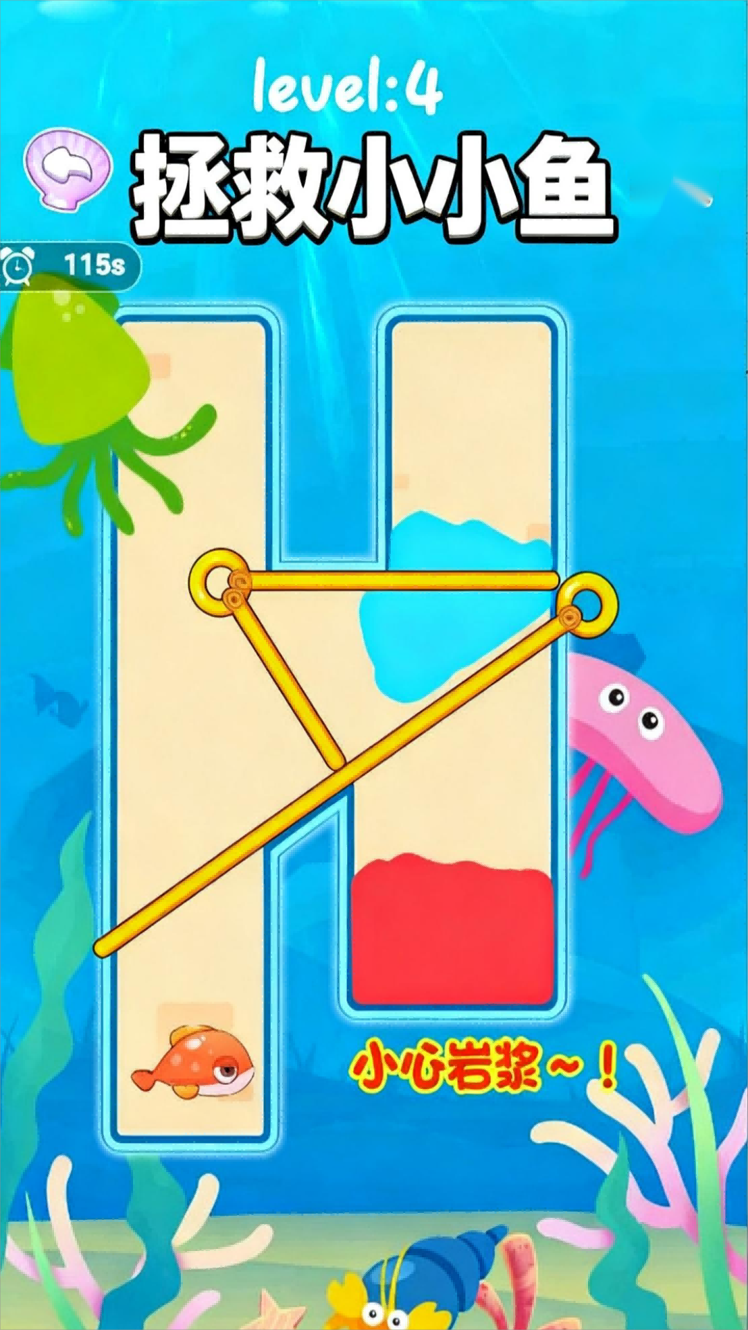 4.随着关卡的推进,拯救小鱼的难度也会变得越来越大。