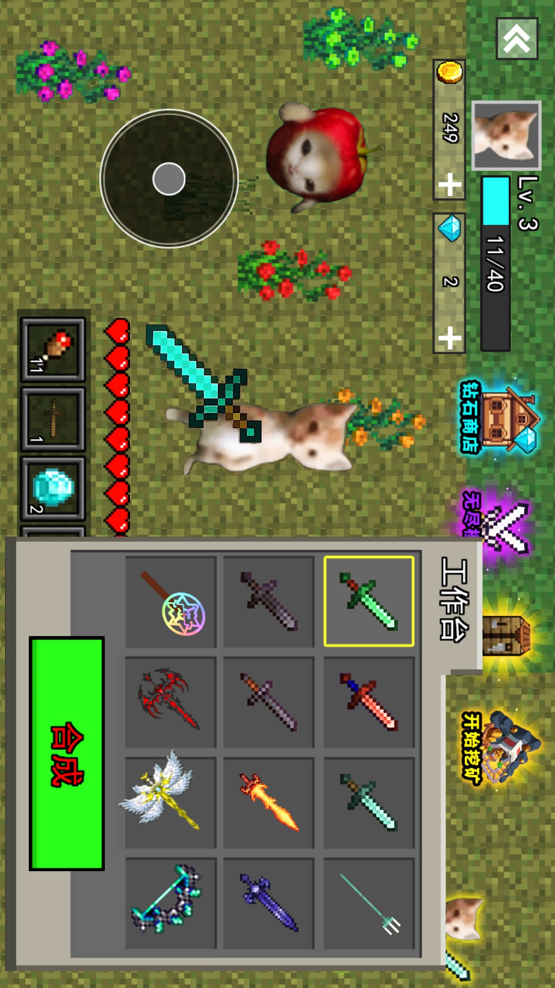 2、合成系统深度丰富,从石斧到附魔武器,从木屋到空中城堡,成长路径自由多样。