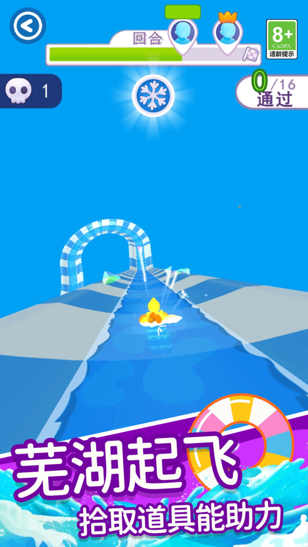 这关我来闯是一款能够在水上轨道之上极致冲刺的闯关游戏,从热带雨林的湍急河流到冰雪世界的冰封湖泊,甚至融入未来科技感的激光障碍赛道,每关都带来全新视觉与操作体验,赛道上布满旋转水车、弹跳浮板、巨型水炮等创意障碍,部分关卡加入移动平台或随机触发机关,考验玩家反应速度与预判能力,敏捷灵活的移动,尽情冲刺到终点。