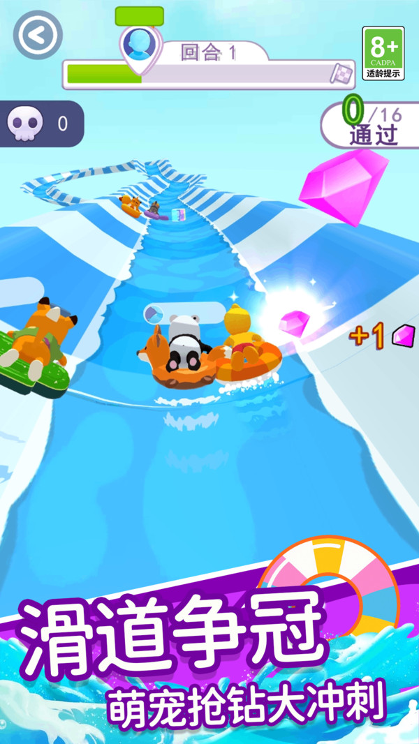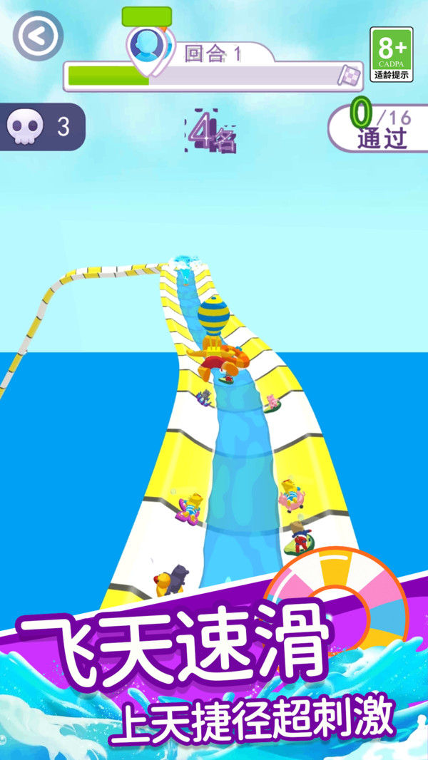 3、角色移动时触发实时水花溅射,通过系统模拟水流波动,转弯处可能生成漩涡特效,增强赛道真实感。