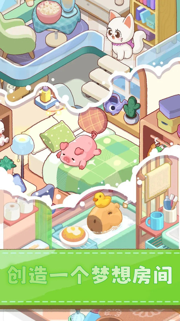 温馨的装饰是一款一点一滴的布置自己的小家的模拟游戏,风格比较的丰富,都能自由选择,从北欧极简到复古田园,从ins风绿植到萌系玩偶,上千件家具与装饰品任你搭配,满足你的个性化审美,自由调整家具颜色、材质与尺寸,甚至亲手设计墙纸图案,让每个角落都烙印你的专属风格,用爱与创意,打造专属于你的理想生活空间。