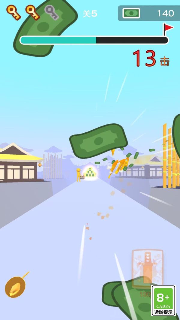 3、不断的斩杀所有的目标,将敌人射击过来的物品斩杀干脆;