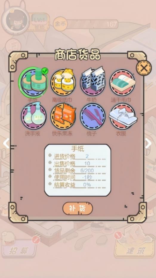 经营赚达不溜是一款模拟经营类型的游戏,一家属于自己的下点,需要去好好打理,每一个地方都能进行全方位的设计,将相应的建筑摆放在合适的位置上,想办法吸引更多的顾客前来,同时你要情节店里的卫生,每一个细微的环节都不要错过,这样才能变得一尘不染,每一个方面都要不断提升,争取将自己的店铺发扬光大,赚取更多收益,开始人生逆袭,成为商界精英!