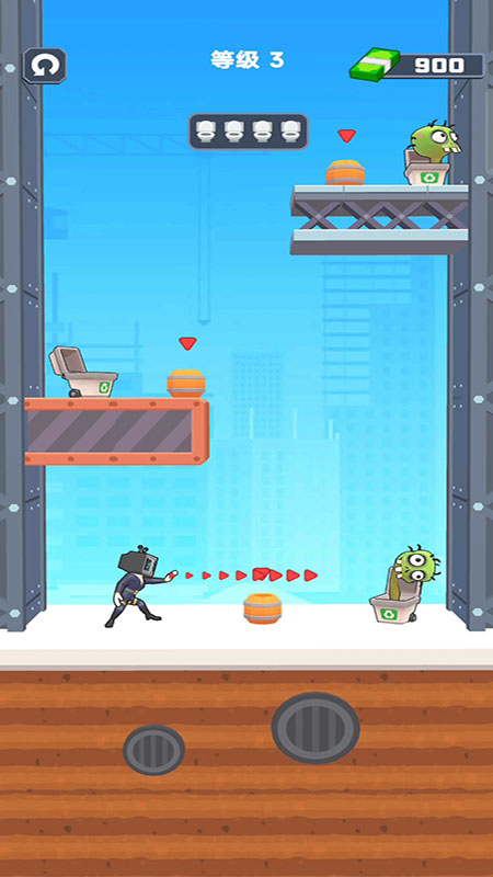 城市怪物大作战是一款将紧张刺激的都市冒险与诙谐幽默角色设定完美融合的反射射击闯关游戏。玩家将扮演一位身手敏捷的电视人特工,利用腰间的伸缩绳索在高楼大厦间自由飞荡,同时运用精准的快速射击技巧,去迎战那些盘踞在城市各个角落的古怪怪物。游戏的核心乐趣在于利用飞檐走壁的机动性与怪物周旋,在高速移动中抓住转瞬即逝的射击窗口,体验成为一名酷炫城市英雄的快感。