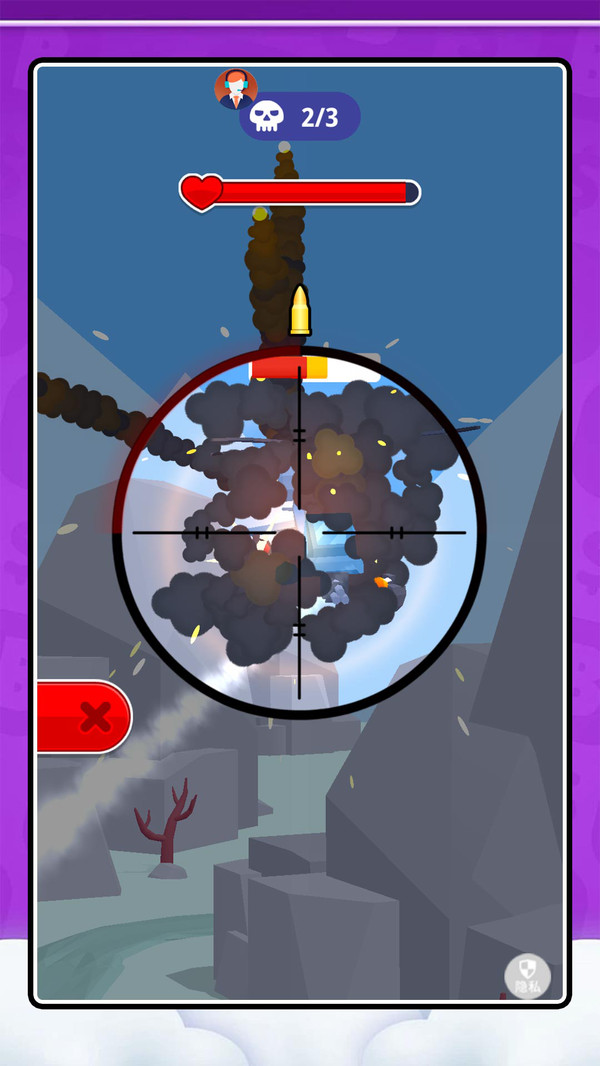 1、点击屏幕中的瞄准按钮,按住滑动对准敌人,松开手射击。