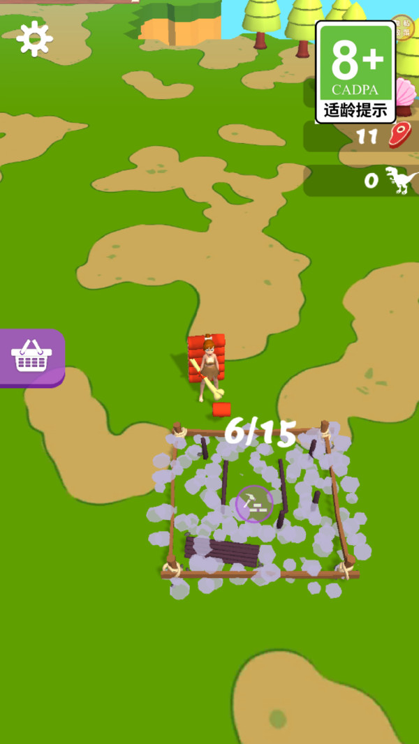 1、通过在地图上收集肉类资源,来建造村庄的各类建筑设施。