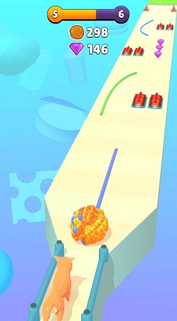 2.你现在的身份是一只可爱的猫咪,需要滚着线团不断向前奔跑。