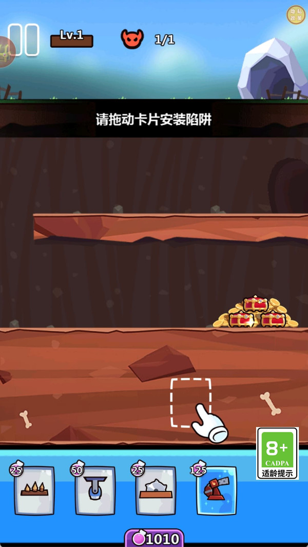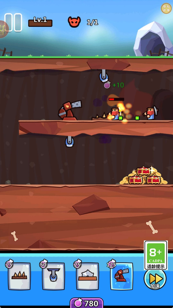 4、玩家可以不断解锁更多的陷阱卡牌,对他们进行升级提升初始攻击。