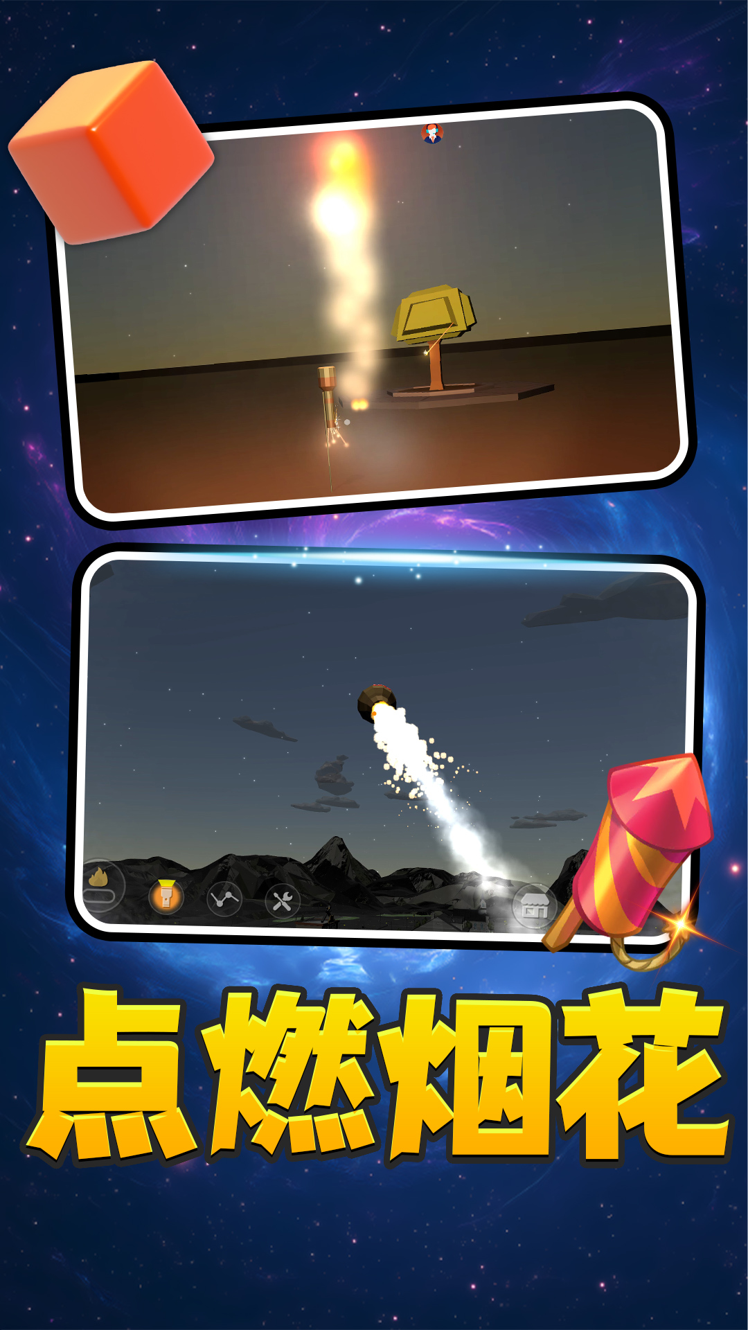 1、自由探索城市,在任意地点燃放烟花,采集自真实烟花录音,爆炸声、口哨声、延时引信声增强代入感;