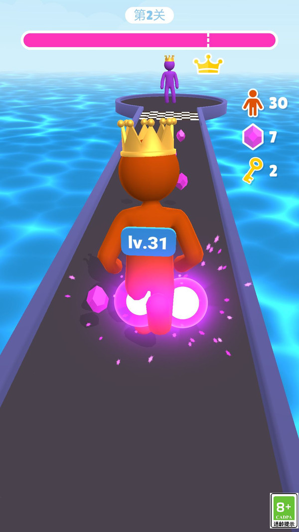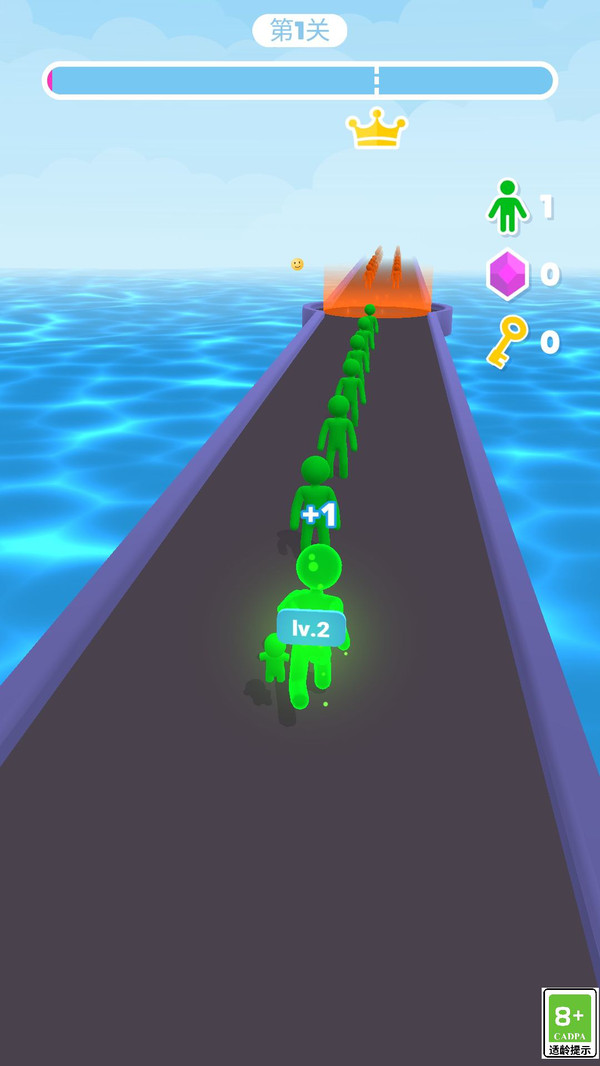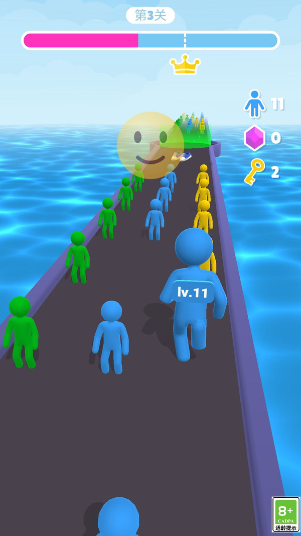 2、赛道上不停去改变自身颜色,吞噬其它的小人。