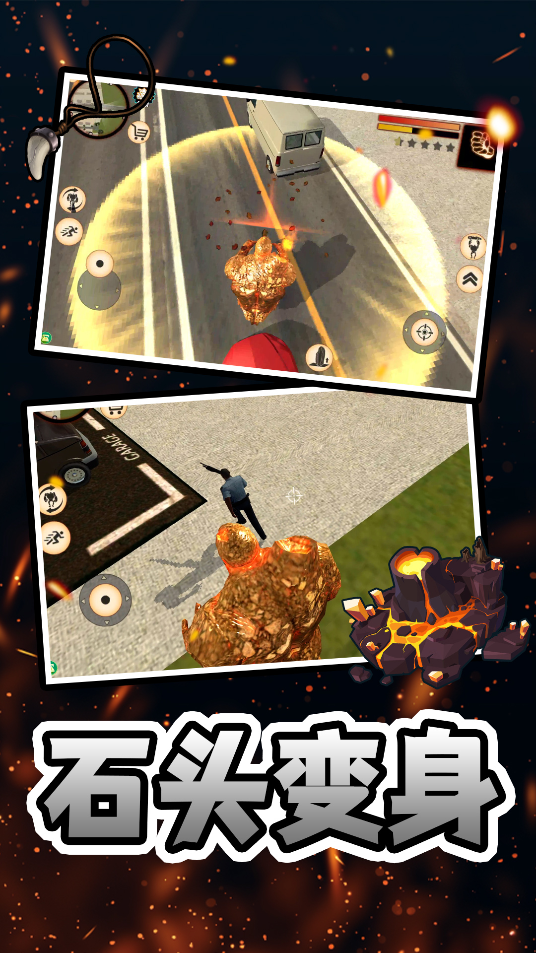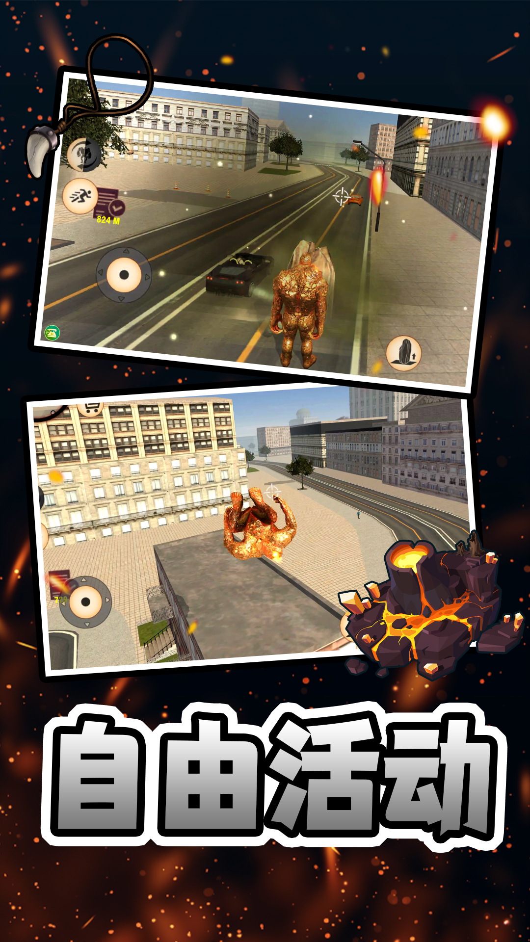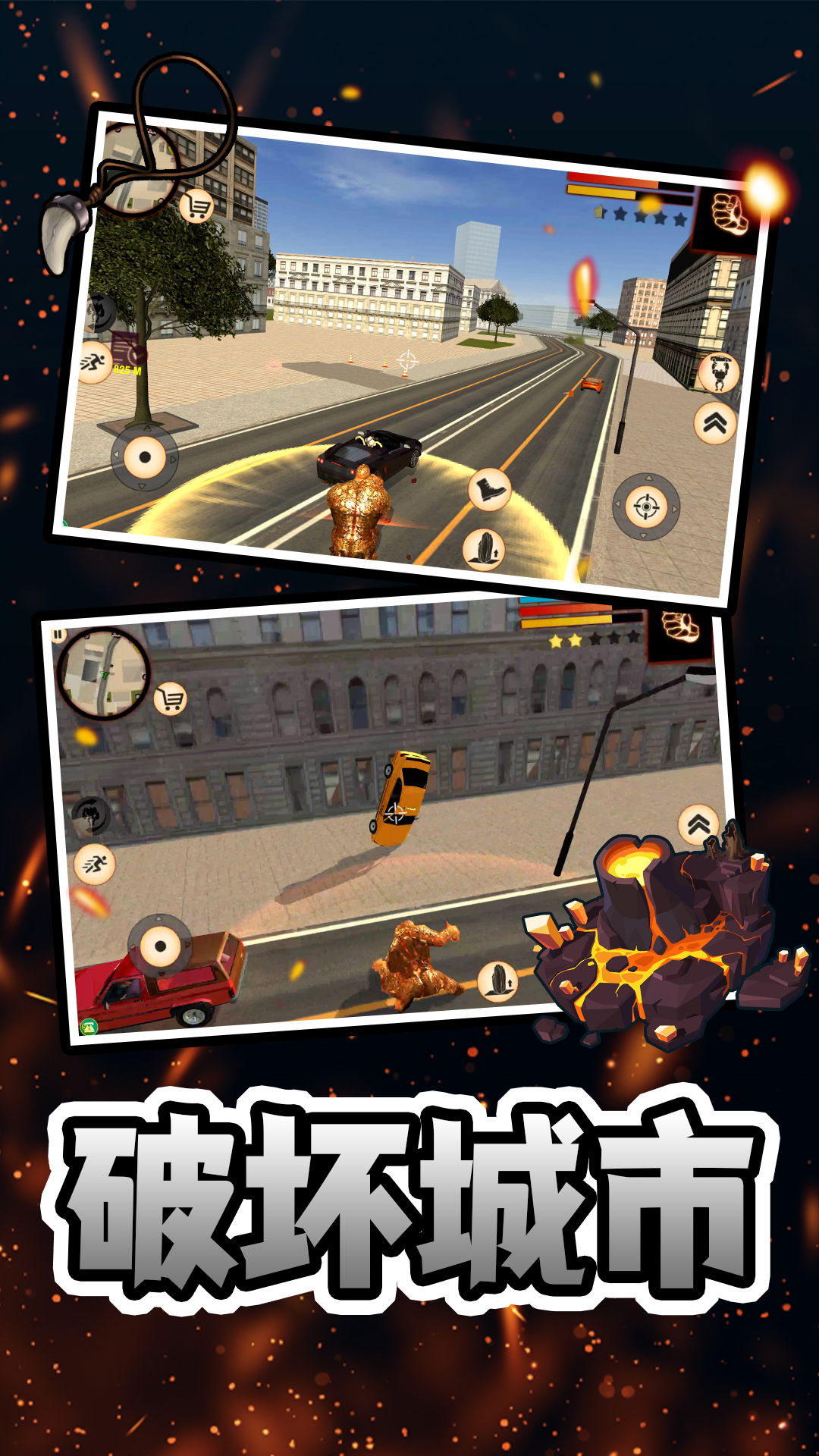石头人合体是一款充满破坏与守护双重体验的冒险类动作游戏,玩家将扮演拥有神秘变身能力的特殊存在,随时在普通人与巨型巨人之间切换形态。化身为大金刚般的巨神后,你可以在城市中自由行走,用强大的力量推倒高楼、投掷车辆、砸毁设施,享受无与伦比的破坏快感。同时,游戏也赋予你守护城市的使命,当灾难降临,你将成为市民的希望,击退天灾巨兽,拯救危难。无论是肆意破坏还是挺身而出,每一次行动都带来极致的视觉冲击与情绪释放,是解压与冒险爱好者的理想选择。