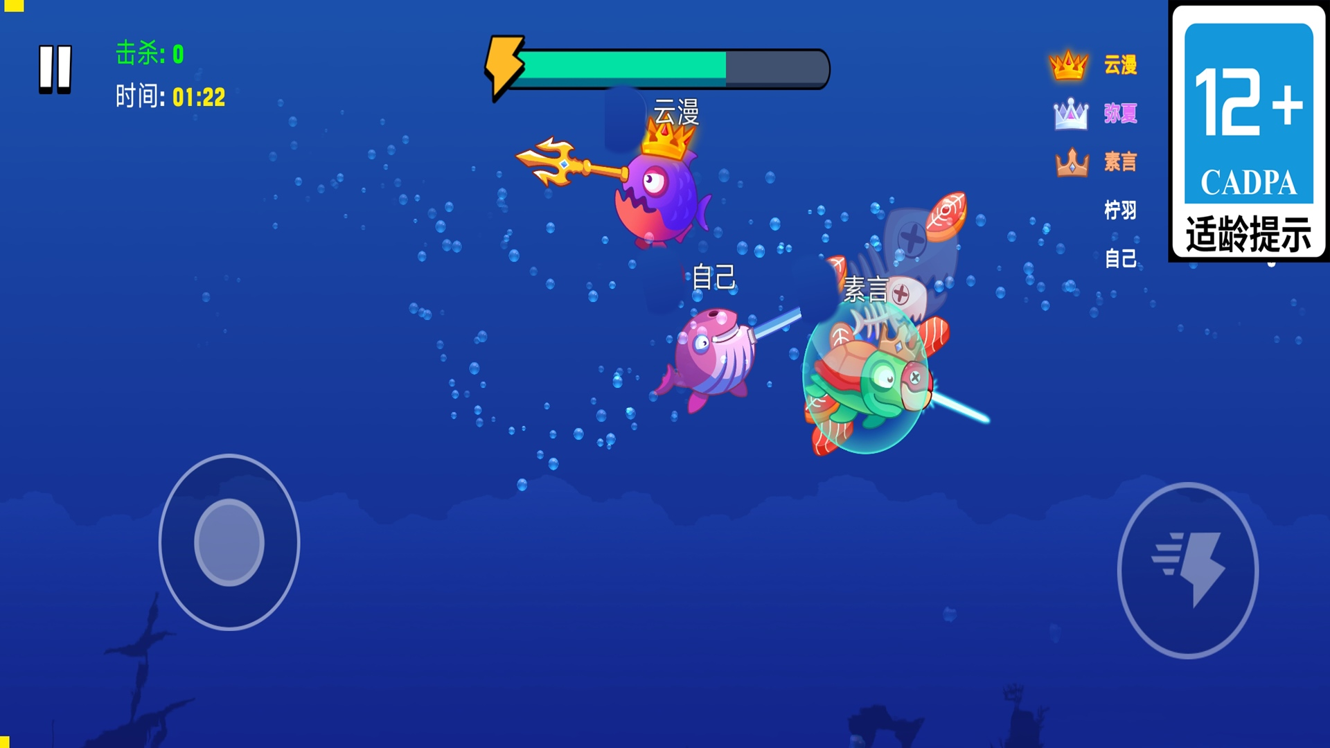 1、采用经典的虚拟摇杆操控,只需一根手指即可轻松驾驭您的鱼,快速掌握游戏精髓。