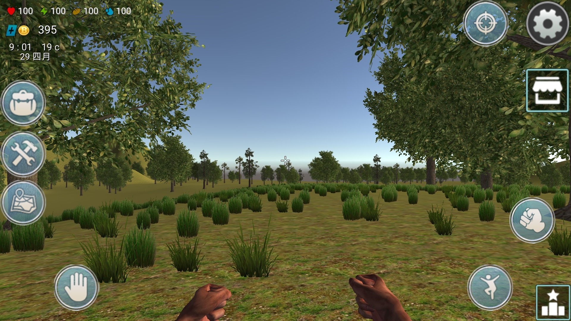 1、开局迅速收集周边木材与石块,制作简易工具用于砍伐与挖掘。