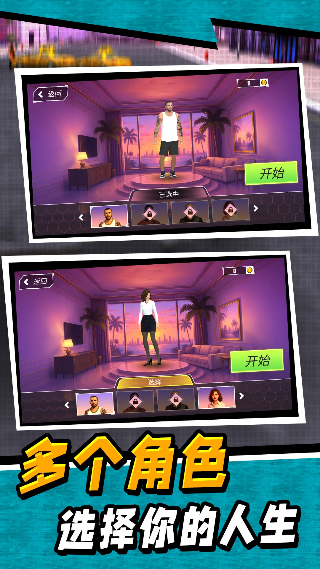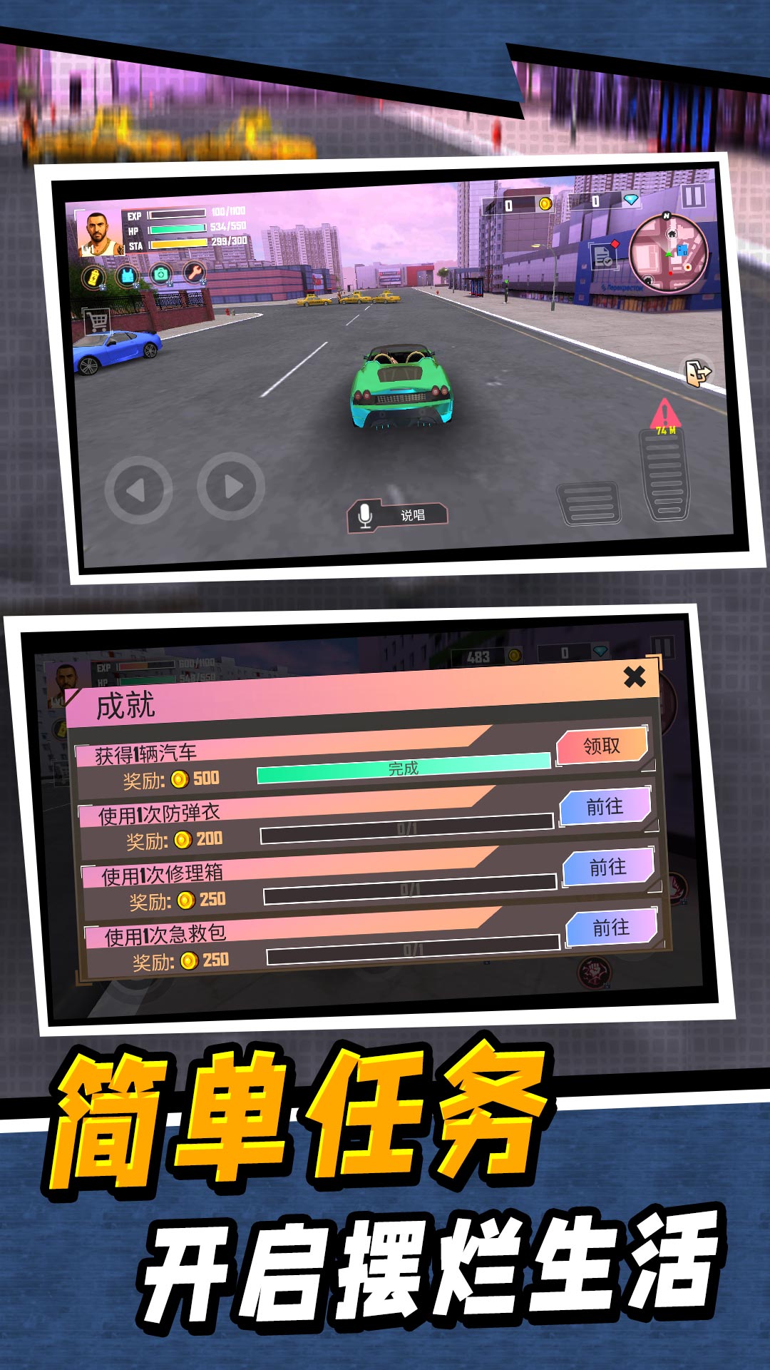 模拟摆烂人生是一款主打自由与个性表达的都市模拟游戏,玩家将化身风格独特的角色,在一座充满活力的开放世界城市中开启属于自己的生活篇章。你可以选择成为街头飞车手、武器收藏家,或是悠闲的城市探索者。通过完成各种趣味任务,获取金币与钻石,提升角色等级并解锁新技能。游戏中可收集多种载具,从复古单车到炫酷跑车,支持深度改装,同时还能升级武器库,应对突发挑战。丰富的道具如防弹衣、急救包助力生存,每日登录更有惊喜奖励。