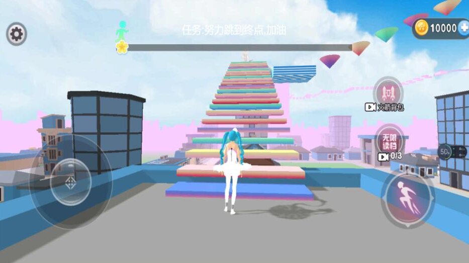 2、控制你的角色前进,会有很多阶梯,需要你一步步进行跳跃上去。
