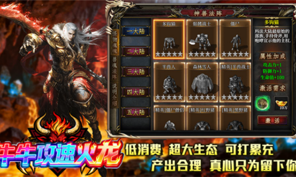 2、通过击败牛魔怪物和挑战火龙副本收集高级装备,不断提升攻速属性,从而在竞技场中获得先手优势。