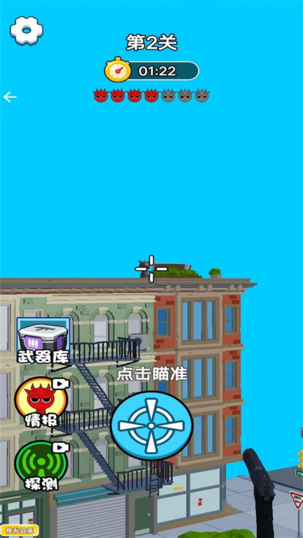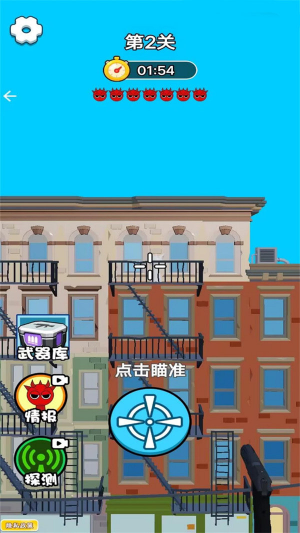 2、点击屏幕中的瞄准,对准外星人,一枪进行击毙,完成关卡所有目标。