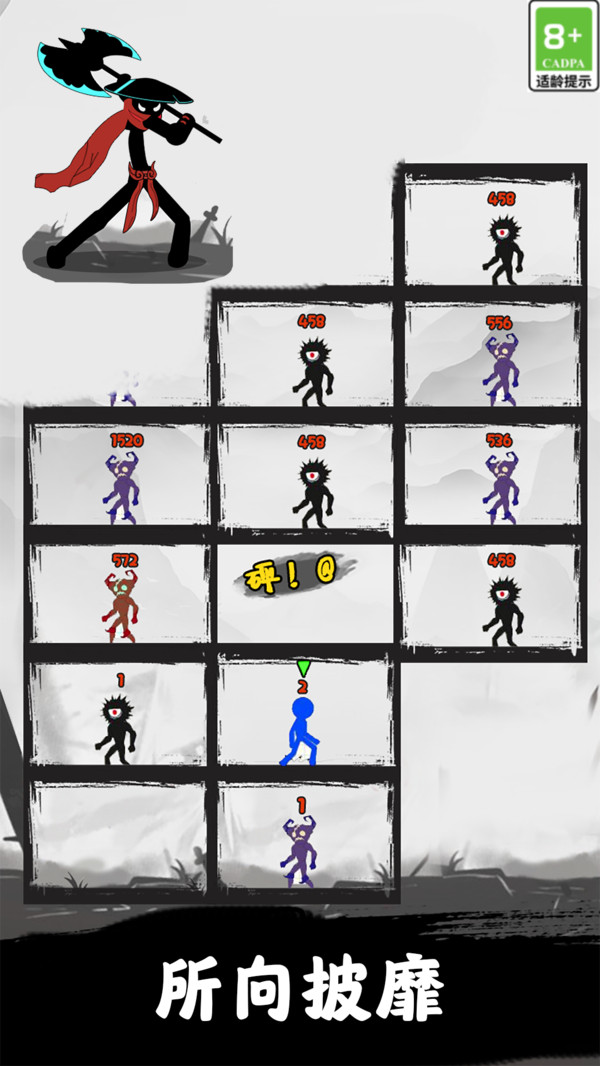 1、根据火柴人的等级,逐步挑战比你弱小的敌人进行升级。