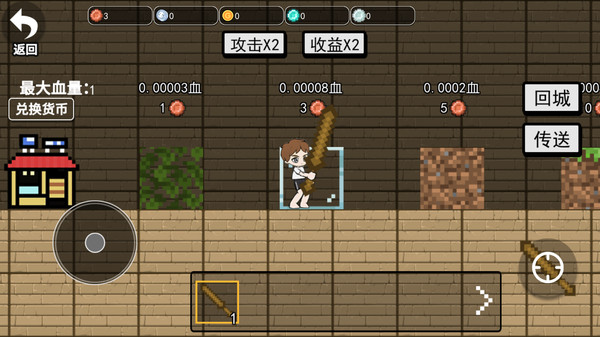 2、每一个方块对应不同的血量以及金币获取,操控角色进行攻击获得金币。