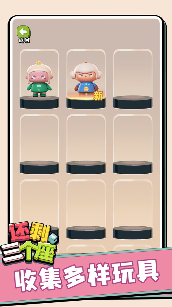 还剩三个座是一款交通调度玩法的休闲游戏,扮演一名高效的调度员,帮助所有乘客顺利坐上与他们颜色相匹配的汽车。每位乘客只能按照自己头顶箭头所指的方向移动。你需要巧妙地规划每一步点击顺序,为乘客们让出通行路径,避免他们在错综复杂的站台上互相阻挡。当所有乘客都能沿着正确方向畅通无阻地抵达并坐上对应颜色的汽车时,关卡即告成功!