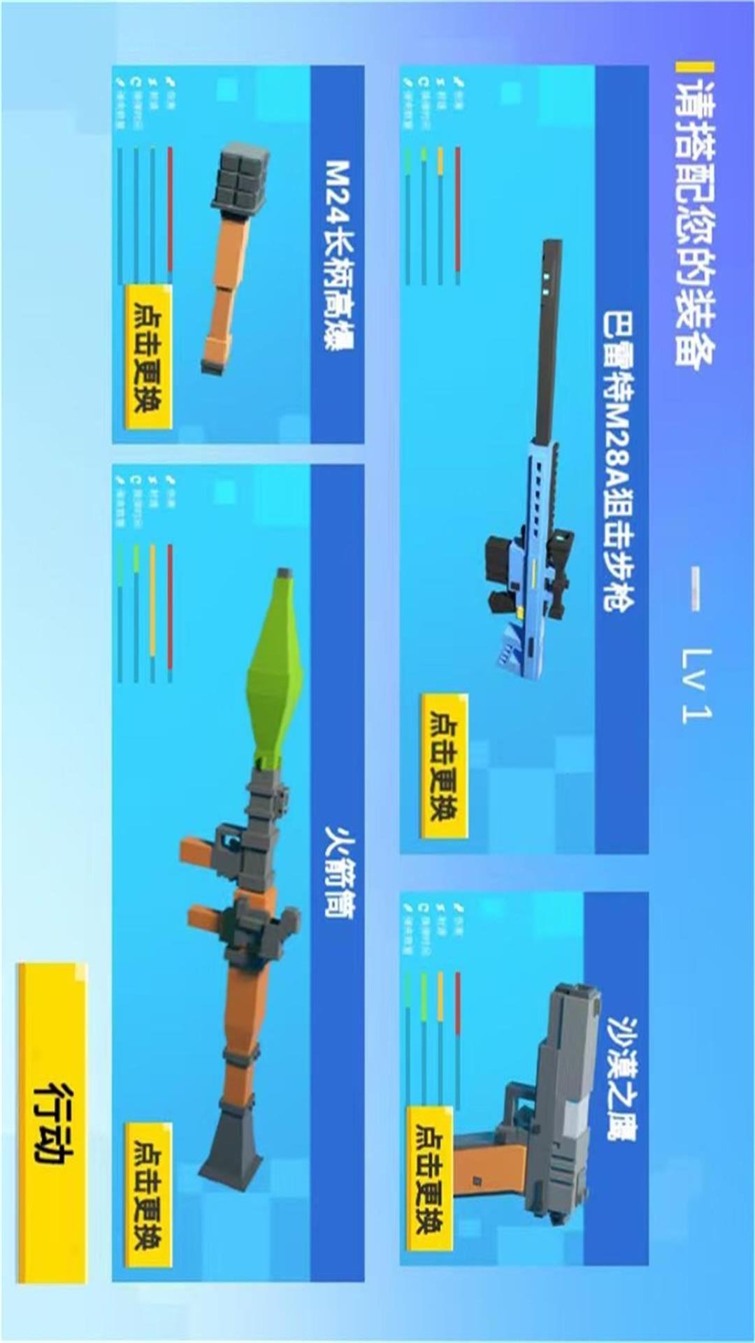 1、选择游戏模式,包括个人竞技、生存挑战或限时活动,进入像素战场开始你的冒险征程。