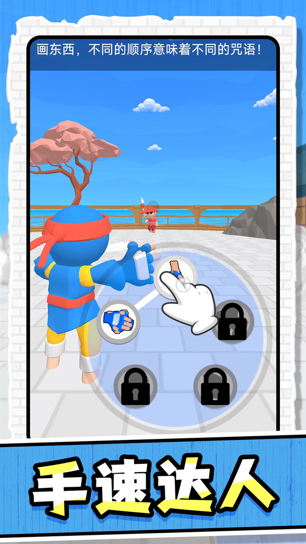 魔力大师2是一款忍术玩法的冒险闯关游戏,你将扮演一位天赋异禀的忍者学徒。面对来袭的敌人,你需要滑动屏幕上的手势图标进行组合,每一种成功组合的手势都将转化为强大的忍术技能,对敌人造成致命打击。随着冒险的深入,你将解锁更多更强力的手势组合,应对速度更快、能力各异的敌人。让你在充满东方幻想的色彩中,体验成为忍术大师的酣畅淋漓。