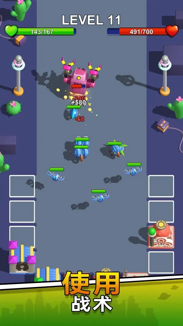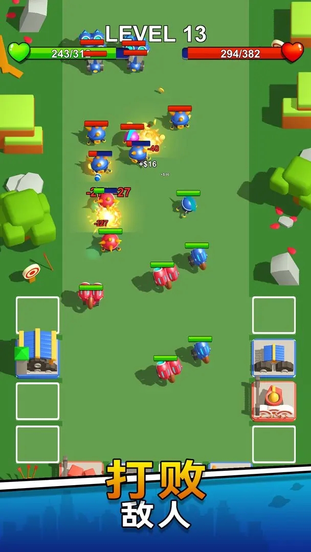 3、爽快刺激的对战方式,点击安置新的机甲,不断的射击沿路的敌人,自由的闯关。