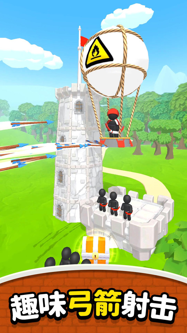 1、进入游戏,点击弓箭掌握好方向射击对方的塔楼,精准的射击对方敌人。