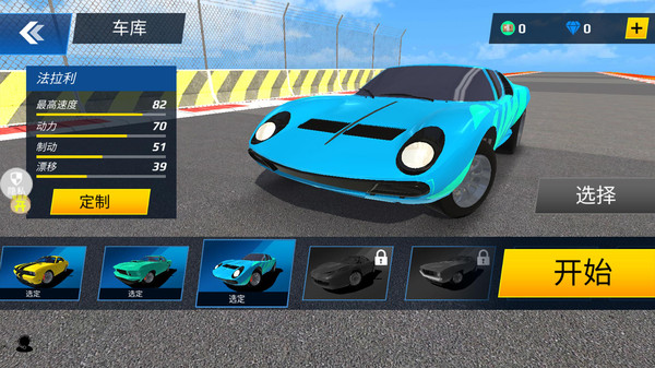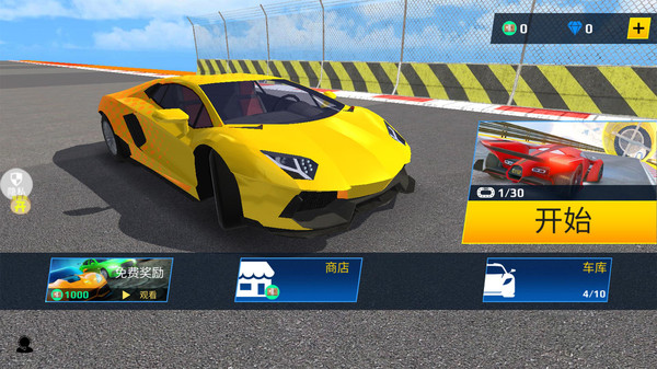1、进入游戏,点击选择车辆开始竞速活动,驾驶车辆在指定的赛道上极速的冲刺。
