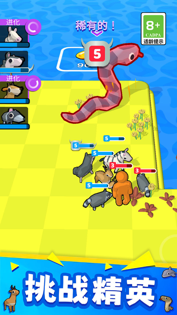 2、场景覆盖草原、雪山等多样地形,搭配隐藏关卡与随机刷新的稀有怪兽,营造轻松愉快的冒险氛围;