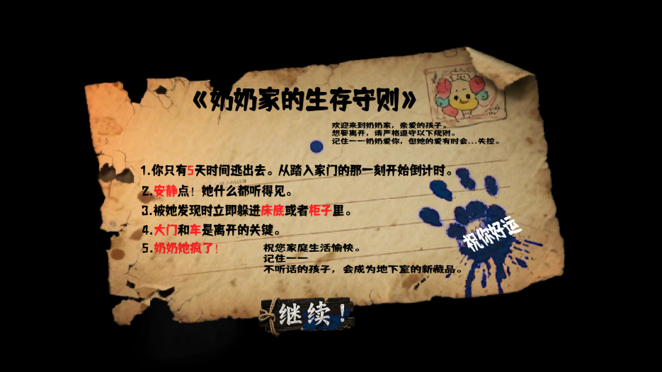 1、在安卓手机上下载安装逃离恐怖老奶奶游戏,阅读游戏须知后,点击开始,踏入这场惊心动魄的逃亡之旅。